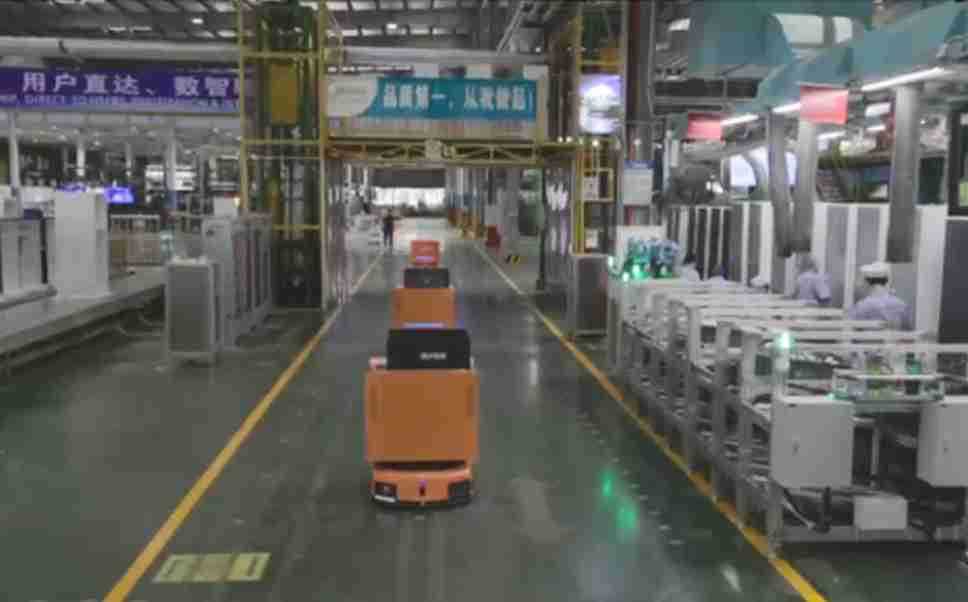 为车载冰箱物流配送打造的智能解决方案,,,,包含产中物流通过潜伏举升AMR搬运至线边,,,,产后成品物流智能仓储,,流程包含产中物流智能齐套入库,,,,线边安灯叫料AMR智能配送至线边,,,,成品入库、、、、出库,,,通过无人堆高车机器人,,,,智能仓储管理替代人工作业管理,,,实现更高存储、、、、更高效率、、、、更具柔性化的解决方案。。
