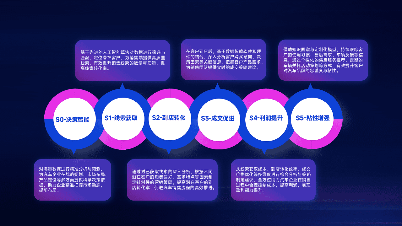 通过拓宽潜在客户来源、、、优化线索分配并提高到店转化率,,,以增强销售效率。。。同时,,,,利用线索数据不断优化分析模型,,有效提升转化率,,扩大营销影响力。。。